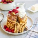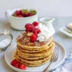 Like our favorite sourdough pancakes, this fresh milled flour pancakes are simple, hearty, and delicious, allowing for quick and easy breakfasts. I love recipes that focus on pantry staples, simple ingredients that I always have on hand. And I also love that these homemade pancakes are not only delicious comfort food, but also filling and wholesome whole-grain nourishment.