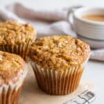 Versatile – These hearty muffins can be customized with different mix ins depending on what you have on hand, or based on preferences. Swap out the pecans for walnuts, or experiment with adding and swapping additional fruits and veggies. Add dried cranberries or even use shredded zucchini instead of apples.