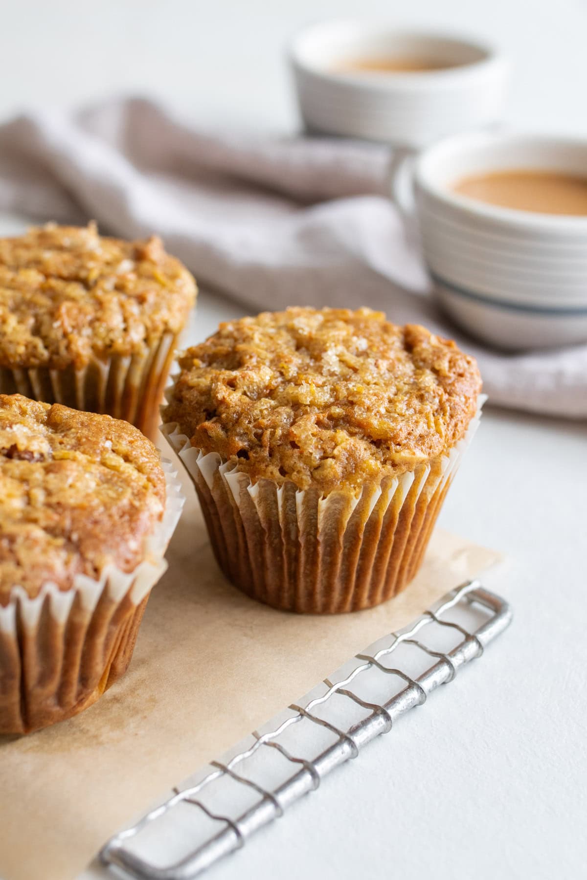 But perhaps my favorite muffin to make in the kitchen, are these morning glory muffins. They are warmly spiced with sweet carrot, apple, and juicy bursts of pineapple. Coconut and pecans add a nutty depth. A zesty sugar topping adds brightness and extra crunch. They are the perfect balance of wholesome and indulgent. Make them ahead for a grab and go breakfast, easy snack, or toss them in a child’s lunchbox. These are perfect for anytime you need a tasty and hearty nutrient boost!