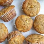 Banana muffins are already a classic favorite, but the addition of chopped apple pieces provides pops of flavor, fun texture, and a seasonal spin. You might enjoy some other seasonal options that are perfect for a crisp fall morning, like these apple cider baked donuts or these sourdough pumpkin muffins with an oat crumble topping.