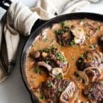 Step 5: Form the beef mixture into six patties. In a 12-inch cast iron skillet, sear the patties on both sides for 3-5 minutes until browned (they don’t need to be cooked through). Remove and set aside.