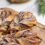 While the dough ingredients are the same, the cinnamon sugar mixture is increased for the filling layers, and the arrangement is much different. Cinnamon rolls also typically have an icing or frosting, while this recipe just calls for a dusting of powdered sugar. Feel free to add a drizzle of cream cheese frosting!