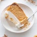No water bath – This easy pumpkin cheesecake recipe is simple to make, because it uses water in a baking dish set on the rack below the cheesecake to create steam. This gives you amazing results without the hassle of a water bath.